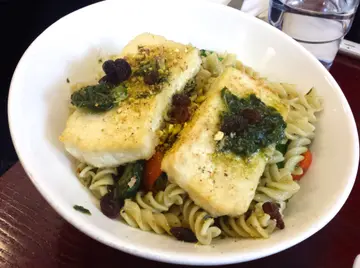 上次去Kinnet Cafe时,留意到禧利街有另一间主打健康食物的Cafe,即管试试,作个比较。就环境而言,当然不及簇新的Kinnet Cafe,没有空中花园,没有精致的沙律吧,灯光较暗,有点儿逼。食物的种类较多元化,有沙律,意粉,汉堡,甚至健康版咖喱,很特别。店较小,人手也相对少,服务没Kinnet的大方有礼和贴心,但也不差。价钱大概差不多。红菜头杂豆汤主菜加钱有是日餐汤。红菜头味鲜甜突出,配上杂豆蓉的口感,不错。豆腐杂菜螺粉配开心果汁豆腐既软又硬,硬得切下去不会散开,吃下去却软滑。螺丝粉的硬度刚好。满心期待,好奇开心果汁是怎样的味道,却失望地没有吃到开心果味,只有香草味。芝士鱼柳黑麦汉堡沙律很普通,不够爽脆,加了很浓的香草,混得不匀,有时过咸。汉堡不错,芝士很香浓,配上薄薄却入味的鱼柳,两者很夹。黑麦面包不错,感觉健康,而且饱肚。外层脆脆的,但内里未够软熟。食物质素还可以,喜欢这里较多选择,但没有Kinnet Cafe好吃。整体来说,下次会多走几步到永健坊。查看更多