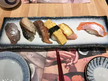 晚市。单点。值第一转:喜欢点鱼类的,如池鱼,鲭鱼,酱油三文鱼,三文鱼腩,鱼类的料足饭少。甜蛋寿司,蛋也满嫩,不是那种像冰了很久,硬硬的那种。板长寿司比另家赞的绝对是米饭上,虽然不是最赞的那种甜米,但已经很不错。等二转:鳗鱼、还有已被吃掉的鹅肝寿司比较喜欢这家鹅肝寿司,因为别家都不是煎而是炸的,弄得本应又嫩滑绵绵的鹅肝变成有点干净净。还是老样子,三文鱼很好吃。除非人在日本,否则也不会试呑拿鱼,因为容易失望居多。…查看更多
