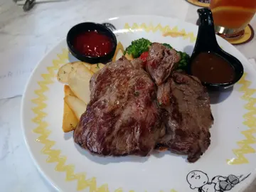 好耐冇去过Charlie Brown Cafe啦,冇2年都有1年。对上一次去时都重未装修,今次去到成个门面都唔同左;门面就靓左好多,但系上到楼上觉得细左同冇以前咁靓呢,以前有个小卖部,依家D礼品全部锁晒系柜入面,好似好矜贵咁,购买欲真系大减。不过装修后,多左好多Set Lunch,感觉平好多呢。以前叫个汉堡加个冻饮都过百,依家有SET,有汤有饮品有甜品,加埋一先过百。沙律同汤,南瓜汤黎,好甜好Cream,意外地好饮㖞。沙律落得太多醋,如果可以分开上比客人自己落会好D。2个小朋友叫既汉堡,劲多肉汁,好好味。其实呢,以前黎食过,有次个肉入面重系好生的,仔有少少阴影,每啖都望下个包先,问佢佢先话怕好似上次咁入面系生既冻既。好彩今次完全冇问题,个汉堡煎得岩岩好又劲juicy。好后悔叫左个西冷,唔好食,好多筋,我见隔望枱果块扒靓好多,大块好多的,真系可能系我黑仔。不过冇下次啰,我一定唔会再叫扒,叫意粉或汉堡就算。朋友叫的儿童餐,原来佢系楼下见到个餐牌就被儿童餐吸引左呢。虽然话儿童餐,不过份量唔少,女仕食都100%够饱的。蛋包饭入面系鸡肉杂豆茄汁饭黎,都OK好味。饮品有4杯,不过唔系叫咖啡,沙冰果D就真系差左DD。不过跟餐既,都预左普通到唔可以再普通了。跟餐的雪糕,睇佢好细杯,但份量一D都唔少,因为系实心的,唔系麦记果D中间中空,可惜朱古力酱少左D。朱古力芝士饼,冇乜特别,唔难食啰,但唔会系令人食完想再食的美味。4个人4个餐,人人都饱到漏,每位都系百松D,环境都靓既,都有唔少公仔,只系冇以前咁靓咁舒服既感觉,似番普通餐厅啰。…查看更多