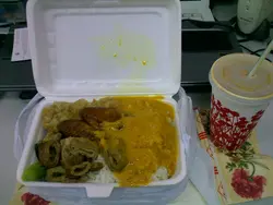 惹味車仔麵😋呢間外賣店在午飯時段經常出現人龍,見到好多食客買車仔麵,就試試啦😁。車仔麵🍜三拼$32,每加一個餸$5,餸選擇都多。汁可選擇牛腩、滷水、沙嗲汁。今次選了油麵,配蘿蔔、豬皮、雞翼尖🐔、貢丸、配滷水汁。滷水汁味濃😚,湯麵🍜惹味,特別是雞翼尖🐔好入味呀😋,有6隻咁多🤗,其他餸都夠淋,好味道🥰。麵和餸份量都足夠,但油麵略嫌硬左少少🙃,煮淋d就更好🙂。另外,可以加$6 order 飲品🥤,冷熱同價,都算抵飲喔😆午飯時段較繁忙,所以最好提早少少去幫襯喇😙 …Read More