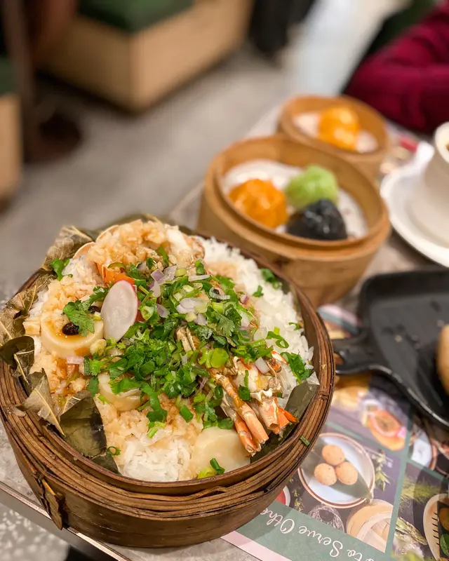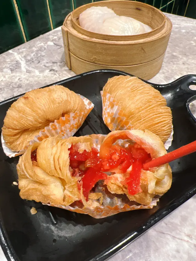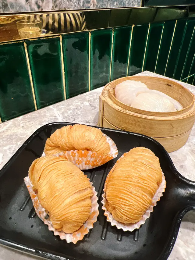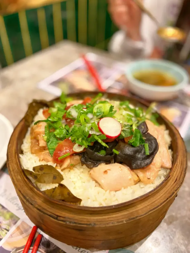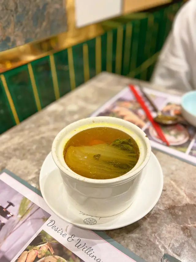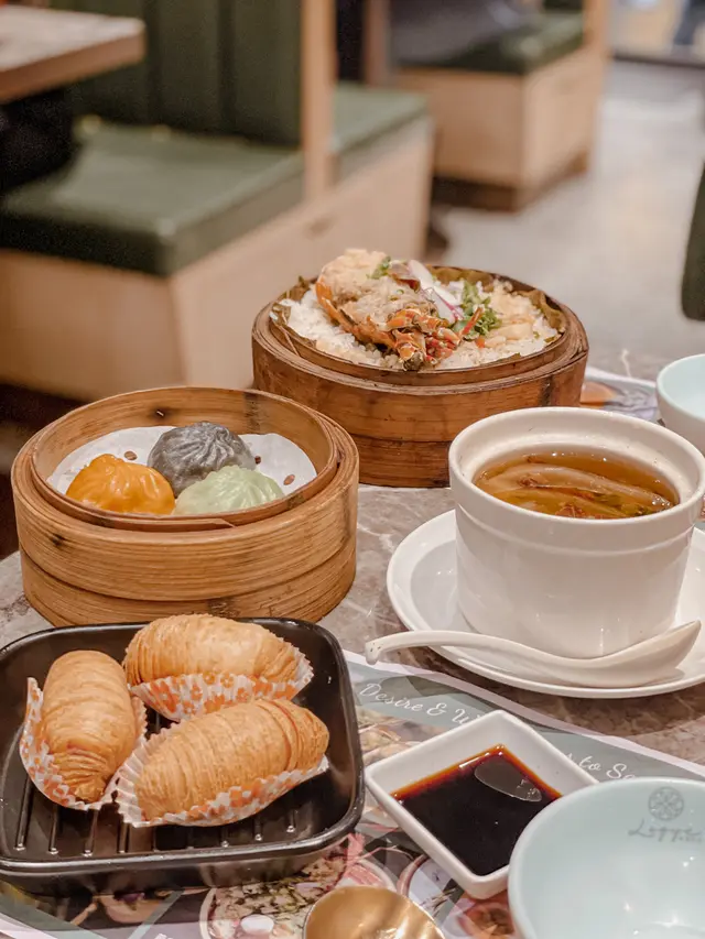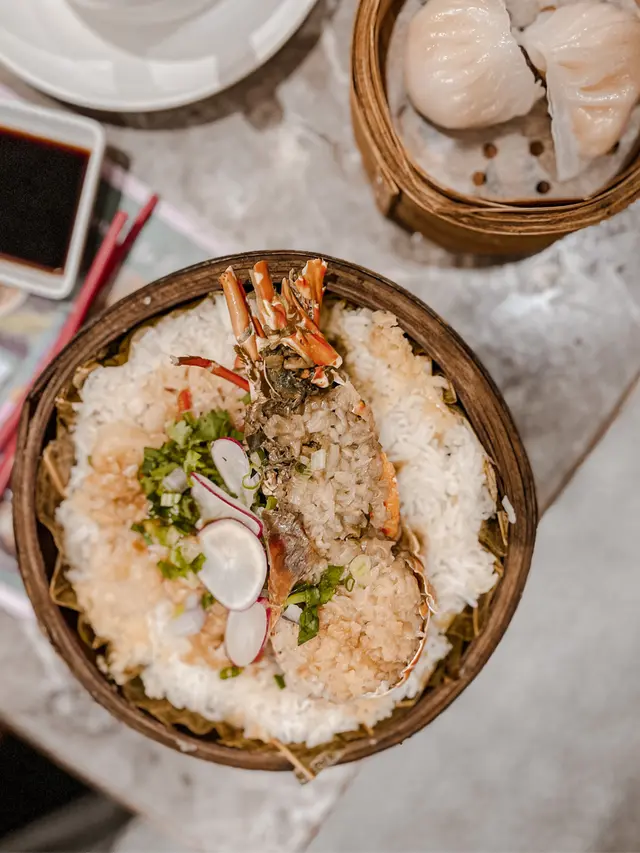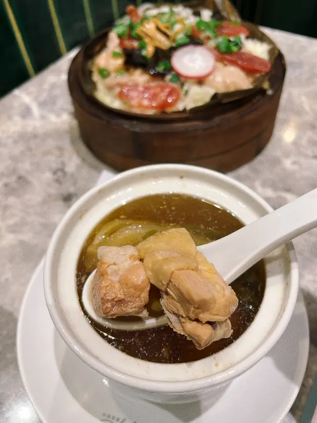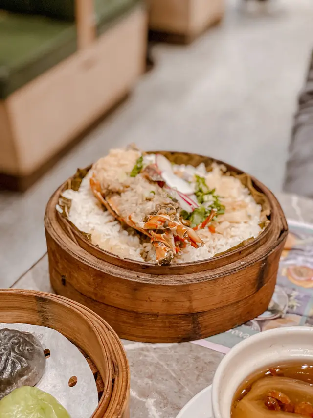 同朋友約好嚟尖沙咀食點心,呢間點心都幾多人幫襯,我哋3點半去仲都仲好多人。餐廳嘅樓底好高,雖然地方唔大,但環境唔會好嘈,用餐舒適。絕配套餐$68/位+茶位$3絕配套餐可以揀一款招牌籠仔飯同一款滋潤燉湯/湯餃,另外可以加多最多兩款點心/小吃,每款加$10。龍仔蒜蓉龍蝦配帶子飯+$40有半隻龍蝦,幾粒帶子,飯量好多,好抵食😳菜膽瑤柱火腿燉老雞+$10燉老雞湯好足料好入味👍🏻紅菜頭蘿蔔絲酥餅/3件$28從來無食過呢種點心😳本身睇個名不抱期望,因為完全無肉🤭但係出乎意料地好好食🤤酥餅超酥脆😋紅菜頭蘿蔔絲調味出色,同酥餅超夾😋必食!三色小籠包/3件$30皮薄餡靚超多湯汁,湯汁仲好鮮甜,真心好食嘅小籠包🤤龍蝦餃/2件$30龍蝦肉彈牙爽口,唔錯。…查看更多