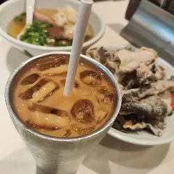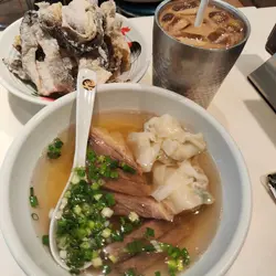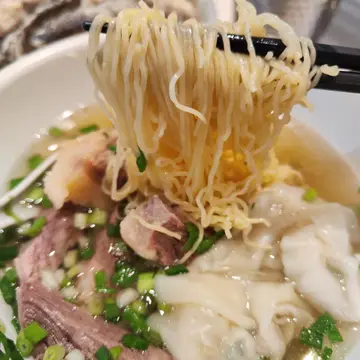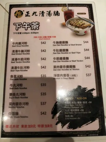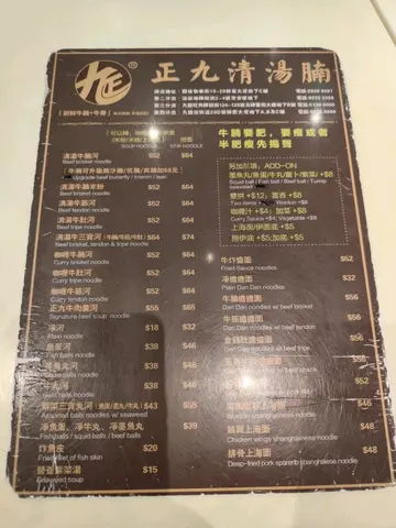 正九清汤腩 (旺角)旺角砵兰街124-128号砵仑楼地下B号舖味道指数:⭐⭐⭐⭐⭐抵食指数:⭐⭐⭐⭐⭐环境指数:⭐⭐⭐⭐服务指数:⭐⭐⭐⭐⭐食物推介:清汤牛腩幼面 $42,加菜肉云吞 $8,炸鱼皮 $20,冻鸳鸯(下午茶) $3清汤牛腩幼面:汤头清澈透亮,牛腩软嫩入味,肥瘦均匀适中,搭配幼滑的面条,令人回味无穷!😄😄😄菜肉云吞:馅料鲜嫩多汁,皮薄Q弹,入口有弹性,感觉令人难忘。这款云吞不仅外表诱人,内在也同样出色!👍👍👍炸鱼皮:炸鱼皮外层酥脆,加上独特的咸香调味,更添滋味,配搭各种粉面一起食用味道一流!😍😍😍冻鸳鸯:浓郁的奶香,清新的茶香与提神的咖啡完美融合,解渴之余,清凉爽口!😋😋😋…查看更多