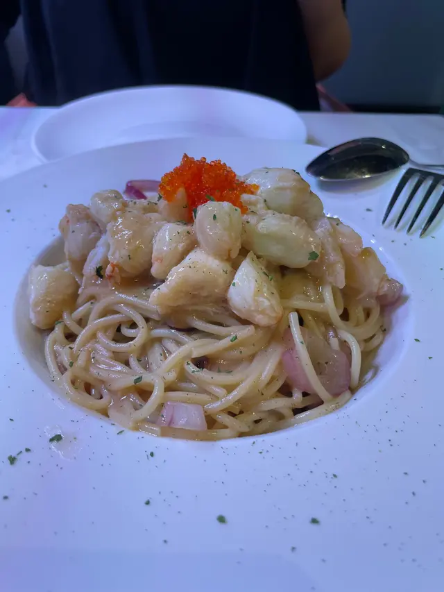 每次經過都給外面魚缸吸引,終於的起心肝約了舊同事陪我去試吓! 兩個人坐在餐廳最入面嘅8人枱,隔離有個大魚缸放滿好靚樹枝好似係用作魚缸裝飾,另一缸有細小咸水魚,感覺舒服! 叫咗兩杯熱情果凍飲,味道比較淡 !蟹肉意粉真材實料,蟹肉好多,夠汁,好味!(可能我哋掛住影相同傾計,意粉淋咗少少🤨但仍然好味 )黑豕肉架分量足,燒到8-9成熟,有汁!加少少黑椒汁,有啲港式feel😋 服務員好有禮貌,重幫我哋將凍飲轉做套餐飲品,夠細心👍 昨晚只得三枱客,相信因為地點偏了點,但我覺得係值得支持嘅小店!查看更多
