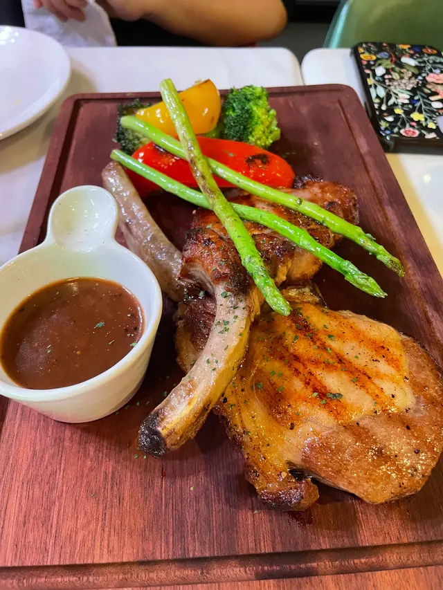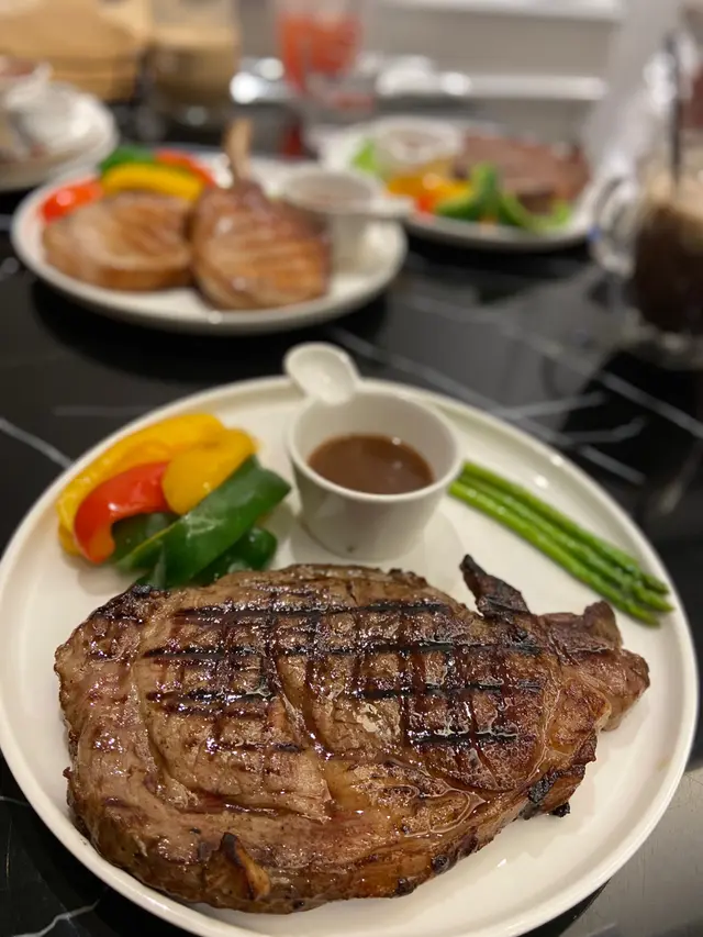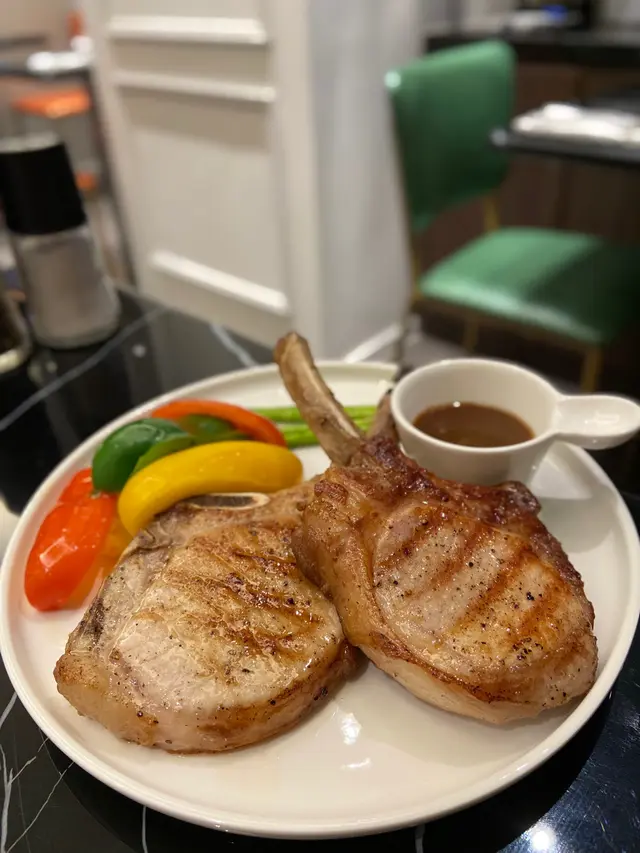 1) ✨西班牙黑毛豬架兩件黑毛豬架都幾大幾厚外面煎得金黃色 火候、時間 恰到好處,豬架熟度啱啱好肉質嫩滑,唔駛落汁都好juicy同夠味👍🏻😍賣相:🌕🌕🌕🌖🌑😋味道:🌕🌕🌕🌕🌖2) ✨美國特級肉眼扒牛排相當之大塊肥瘦均勻,食落唔會膩肉質比較有咬口配埋個汁可以特出牛嘅香味😍賣相:🌕🌕🌕🌖🌑😋味道:🌕🌕🌕🌖🌑3) ✨黑松露薯條薯條較粗,外脆內軟上台前應該係晾乾d油,所以薯條乾脆,放耐咗都唔會淋👍🏻松露醬好香濃,配埋薯條簡直食唔停口🙈😍賣相:🌕🌕🌕🌖🌑😋味道:🌕🌕🌕🌕🌕4) ✨帶子蒜片抄意粉意大利粉抄得乾爽能夠做出al dente嘅口感好香蒜味 以好有心思加咗好多蒜片帶子煎得夠juicy, 一啲都唔老😍賣相:🌕🌕🌕🌖🌑😋味道:🌕🌕🌕🌕🌖5) ✨美式辣肉腸薄餅Pizza 細細個 好得意非常香脆可口,唔會太乾或太heavy啱晒一班朋友仔當小食share😍賣相:🌕🌕🌖🌑🌑😋味道:🌕🌕🌕🌑🌑6) ✨黑松露大蝦意粉呢款意大利粉口味偏淡但 配埋香濃嘅黑松露 中和得好好有好多菇菇🍄😍賣相:🌕🌕🌕🌕🌗😋味道:🌕🌕🌕🌖🌑7) ✨小方磚朱古力8) ✨玫瑰拿鐵9) ✨特濃康寶藍10) ✨小食摩天輪11) ✨熱情芒果雪糕窩夫12) ✨黑森林草莓雪糕窩夫查看更多