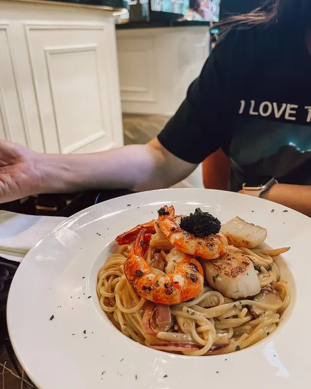 身為街坊嘅我,見證住哩個鋪位由間地產鋪變成間靚靚餐廳,而且日日返工都會經過,今日終於同屋企人去試下喇~估唔到間餐廳都幾大,餐廳除左餐檯及座位,仲有一個幾大嘅位置擺賣水族用品,侍應帶我地行入去餐廳最入嘅位置坐,睇落去應該可以間間房出黎,製造一個私人空間。午市套餐都係以意粉及薄餅為主食,跟沙律同一杯餐飲,轉咖啡/其他特飲就有半價優惠跟餐嘅沙律正正常常啦,冇咩驚喜都好合理,我幾鍾意啲沙律醬,酸酸甜甜咁好清新。話說屋企人叫左個雞脾菇沙律,$78都係哩啲沙律菜+煮到熱辣辣嘅雞脾菇放面,咁當然大碟好多啦(唔記得影相😅),屋企人係有啲啲失望,覺得啲菜好似唔係超級新鮮咁,不過我個人覺得冇問題😛哩杯玫瑰咖啡其實都幾香甜,都算滑嘅,拉花有又幾靚咁🤣🤣 我都知加左奶同額外嘅味道就唔係太會飲到原本咖啡嘅味道㗎喇,下次先試下佢嘅齋啡啦☕️屋企人叫左杯americano, 我冇試飲唔知味道,但係屋企人冇落糖都飲得曬咁大大杯,所以我諗應該唔會太苦,同埋望落去都唔似好濃咁,味道應該是OK的~屋企人揀左哩個炸蝦肉丸意粉,聽佢講啲炸蝦係幾唔錯嘅~我叫左哩個蒜香大蝦意粉,我個人係幾鍾意哩間餐廳啲意粉嘅質感,好彈牙爽口😆😆 意粉唔算話超濃蒜香好惹味果啲,味道中規中矩啦,係口感取勝😁總括黎講食物質素都不過不失啦,價錢唔係超貴,但都唔能夠話好抵食咁;店內環境係非常之OK,坐得舒服,服務好好,員工個個都好友善,我諗喔遲啲都會再幫襯嘅😆😆查看更多