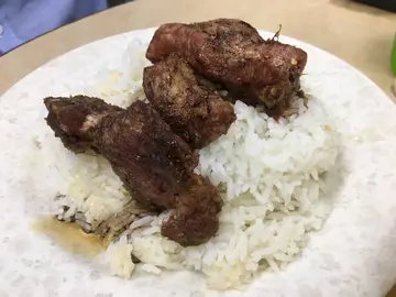 椒盐排骨饭饭可以配清汤或者咖喱汁净系睇个卖相已经好令人失望椒盐排骨嘅份量有小份量少都算!又唔好食
