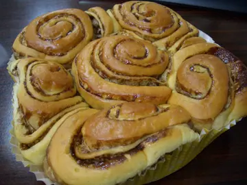 继尝过panash及博洛尼亚的丹麦面包后,原来葵芳这家小饼店也有类似面包出售,当然要一试。丹麦吐司(购买时$12.5,现已加到$13) 每五片一袋, 面包层叠外层跟博洛尼亚类似,似乎做法真的相若。偏黄色面包有浓浓鲜牛油香,应没有81层的面包够松软弹性,只是外层较厚及硬,比不上博洛尼亚水准但比panash好,而且价钱相宜很多,作为替代品也很不错,不用走到尖沙咀嘛。多款袋装面包中,名为花卷的面包最有兴趣,纸盘大大的装著六个卷状包,外型真的蛮像花的。味道分别有乳酪及朱古力两种,首选当是较浓味的朱古力,每个面包卷非常柔软,牛油香没有丹麦面包重,溶化朱古力微甜有朱古力香,卷在面包间令味道更有变化,微甜有牛油香的面包很容易吃掉两个以上,一袋可当两天早餐,悭钱最好。多月前装修后,饼店多了一个曲奇饼专柜,十多款一口自制曲奇可随意配搭,价钱也比很多名店相宜, 过年时候曾买了一盒当新年手信送予客人,大大盒也只是六十多元,相宜又大体,我当然不放弃试食机会。试了一片花型果占曲奇, 红色果占浓甜在味觉上最突出,牛油曲奇尚算松化但仍有点硬硬的嚼劲, 不是入口即溶的重手牛油曲奇,不过牛油香气仍然蛮明显,以致曲奇水准还可。以暖灯保温的曲奇入口时微暖,虽不是出炉即卖,但仍算有点温度。不知道是否时间不对,还是焗包时间提早了,以前午饭时间经过总遇上焗面包时段,开放式饼房焗面包时浓郁牛油香充斥著店舖四周, 总之路经商场就香得要命!! 现在反而少了这种满足嗅觉的乐趣,有点怀念的说。