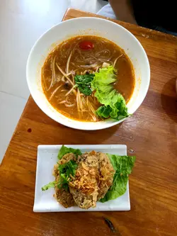 见到朋友推荐我就试一试佢,本身都系冬阴功汤爱好者,对冬阴功有一定要求的。当日晏就去食lunch。一嚟到面嘅份量少,佢碗唔算深 ,所以几啖食得哂。之后,配菜少 得2个蕃茄仔加少少秀珍菇,一条生嘅生菜,完。鸡翼就好食嘅,可能系炸,仲要系即炸嘅冇乜可能会难食嘅🤣到汤底方面,讲真,唔系我杯茶,一睇都知系淡,的确系淡而唔酸唔辣,亦冇用椰奶去令个汤底有色有少许椰香味,饮唔出冬阴功嘅味道,3分/10分!金边粉都算唔错嘅,有花生干辣椒青柠,不过就冇一点点张口( 黏住口)嘅感觉。木瓜沙律算系最正常发挥,份量都多嘅42蚊午餐。讲真,如果真系嚟试嘅,唔好叫冬阴功,可以试其他,哩间冇乜特别…查看更多