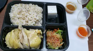 见评论全部赞👍,决定一试。主打外卖,午餐set,得5种。那就来一客海南鸡🐔饭,外卖,盛谓HK$62。卖相简单,企理,细心。😝日式丼style,仲有湿纸巾。一个简单嘅外卖都有几个选项,包括饭(白饭,五谷饭, 油饭) 和 酱汁(泰式汁, 自家秘制汁 , 葱油汁) 。Set包沙律和甜品。 🐔肉肉质,唔靭但亦唔算滑, 份量刚刚好。 袖子沙律好好味😋,份量稍为少了点。𠮶嚿类似椰汁大菜糕嘅甜品,就好一般, 硬而无味😞。 set吾包汤或饮品(用另加$)。整体来说,👌。可能好有期望,所以吾觉特别吸引。…查看更多