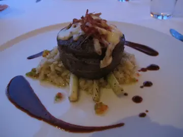 Rib eye with risotto, 肉眼5成熟 刚刚好, 腌得很入味, 不需另加酱料!