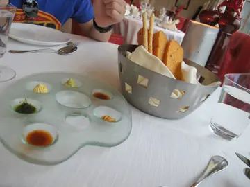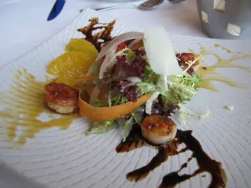 茵特拉根酒店只有6间餐厅, 对意大利及日式餐厅的兴趣较大, 这天日式餐厅被包了, 所以便到意大利餐厅用餐, 餐饱是送的, 附上不同的牛油及油醋, 由其喜欢辣牛油, 很开胃!Scallop Salad, scallop刚刚好,不太生亦不过熟, 失分在橙柳, 似是放了很够的橙............ 而且带酸Spinach mushroom lasagne, 份量大, 菠菜与蘑菇的份量很多, 配上蕃茄酱汁很好味!