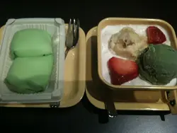 服務生一拿上來,我就覺得奇怪...為什麼是綠色的班戟皮><後來沒多理,吃了再算! ^^ wo~ 用刀切了一下:)吃了一口~ 哇~ 太好吃了!榴槤很濃郁! 很香:)這個普普通通, 個覺得"發記"的好吃過"滿記"我還吃到有一顆顆硬硬的...不喜歡! 最後還要吐出來>< 查看更多