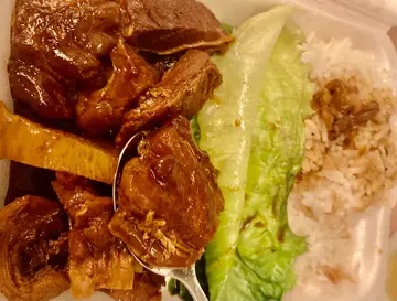 唔想煮饭,又唔想食得太Heavy,所以放工就去咗买外卖,虽然卖相唔算好突出,菜式简单,但我觉得以平价餐来讲算系唔错。云吞面 唔知大家有冇食过一碗云吞面系有六粒云吞? 平时我食𠮶啲得两三粒,但系喺平民价钱来讲佢有六粒云吞面算真系好良心!侯柱牛筋拼牛腩饭 牛筋煲得好林,配埋烟韧既牛腩,口感十足,另有萝卜同埋生菜做配菜。紫菜汤 炸鱼皮味道系正常但炸鱼皮可能摆内左,有少少林,咬落去就唔算好脆菊花茶我觉得最惊喜真系个菊花茶,饮落去有种清香嘅感觉,唔系普通就咁冲出嚟嘅菊花茶,应该都系返咗一段时间去煲既。…查看更多