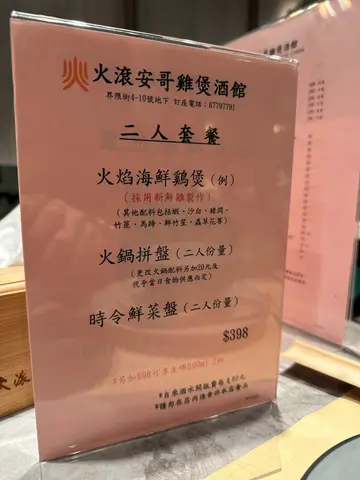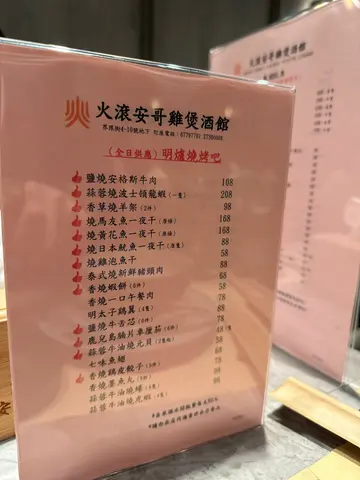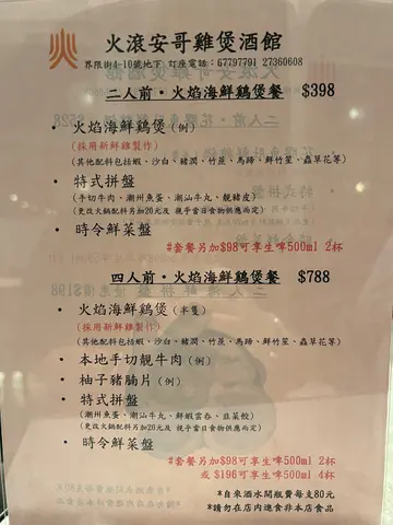 食过呢间两次 上一次系10月12月底周末黎 都得几台客 虽然价钱唔系平 但食材系有心思同高质 唔明白点解咁少客 作为街坊好担心佢会执笠 特登出返个post😅 烧马友$168烧得好香好嫩 仲系好多汁 系个皮比较咸叫咗火焰鸡煲二人餐$398,本身佢有猪润,但系我哋唔食,佢就帮我哋换咗其他野。汤底有马蹄竹蔗、竹笙、虫草花、莴笋、云耳,我哋每样都有食,啖汤好甜。鸡肉都好滑煮到最后都仲系觉得好食,唔似之前食过其他地方啲鸡好干或者冇乜味。虾同埋沙白都好新鲜,虾肉好实净,沙白好鲜甜。最后埋单756,饮咗椰青同埋柠乐冇饮酒,有啲小贵,不过材料都对得住个价钱,我会返黎食…查看更多