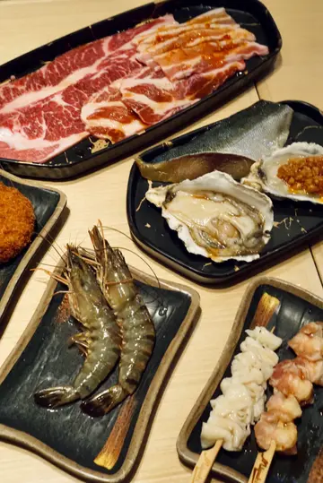 哩间烧肉放题最近有期间限定夏日美食祭典!每位惠顾放题之顾客,仲可享夏祭限定『炎之夏日特饮』无限任饮!Set B美国牛肉放题已经包左唔同部位嘅安格斯牛肉,包括牛板腱、牛小排、一口牛柳粒、翼板西冷同埋黑椒牛仔骨。食材高质,嫩滑多汁!特别推介仲有啲日式鸡腿肉超嫩滑、鸡软骨串有口感! 仲有西班牙黑豚肉同埋烟鸭胸等选择,令人食得好过瘾!唔止有各种肉类,呢个放题仲有好多海鲜选择,例如超大份原条鲭鱼、原只大虎虾同埋青口,新鲜又美味!另外,仲有好多款蔬菜选择,包括鲜冬菇、洋葱、生菜、牛油金菇、秋葵、翠肉瓜同埋牛油本菇,可以搭配著烧肉黎食,健康营养之选!最后,仲有八爪墨鱼丸、胡麻豆腐沙律同埋芝士鸡翼等小食选择,令整个餐饮体验更加丰富多元!MEGA大葱豚肉串烤得得香嫩多汁,葱香与豚肉的搭配相得益彰! 牛油酱油烧粟米烧得刚刚好,口感鲜嫩惹味!限定花火寿司盛 ($198)有各款寿司,卖相超吸引,抵食!…查看更多