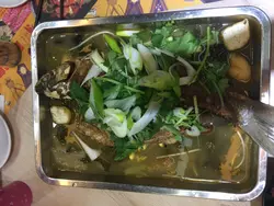 住左系附近3件几都冇去食过! 朋友过来拜年就去试试!选择都多, 又有孖宝 !我地选左半只鸡煲 + 手切牛颈脊 $338 , 因有小朋友选左走辣!!麻辣鸡煲 - 味浓, 但走辣冇晒麻辣鸡煲既香味! 普普通通!手切牛颈脊 - 牛味唔太重, 都淋身唔"鞋"!原条烤坑鲩鱼配山椒酸菜味新汤底(小辣)$188 - 鱼肉比较松散及"鞋" , 汤亦比较辣! 梅花豚肉$78 - 几厚肉都几淋! 味不算浓!墨鱼丸拼鲜牛丸$78 - 墨鱼丸牛丸好弹牙! 醉鸡(半只)$78 - 麻麻地, 唔知系咪酒腌, 味道怪怪地!猪红$28 - 实身唔易散, 味道比较腥!松化响铃$35 - 即炸唔油, 好松好正!! 柠檬茶 (好似)$38 - 味普普通通! 系大大杯几抵!整体唔系差, 部份野好抵食. 不过鸡煲就一定要食麻辣!