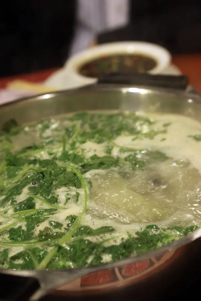 十四年前,小弟的生日正日,與她在海洋公園渡過,十四年後,已為人母的她.帶著我這個麻甩,來到西環山道的"煲皇",用火鍋來為我慶祝生日,將彼此昔日的青春舞曲,一同放在火窩上滾掉.上次來波記吃鴨瀨時,已經留意遠在燈火欄珊處的火鍋店.她是熟客,說水準比同區的漁皇世家,甚至老字號的"火井"更好.論環境,煲皇算是靚裝修,如果地方麻麻,又怎會吸引到隔離檯的老外們光顧呢.是夜三個人,當然不能像月前在禾牛會一役之中,五秒絕殺牛頸脊吧.湯底不能三心兩意,是夜只能一條心,對著個莧茜皮蛋湯底.如果想吃得高級一點,可來個火焰海鮮鍋,煲皇上湯鍋,一鍋索價過二百,想補身嗎?來個藥繕雞鍋,或者百芷天麻魚頭鍋吧.我們的莧茜皮蛋湯,只賣$48一窩,比最平的清湯鍋貴$10.當湯底一滾,清香的莧茜味呼之欲出,我知道有些人對莧茜極為抗拒,甲之熊掌,乙之砒霜,我非常喜歡莧茜的味道,湯底很清甜,更能突出火鍋材料的鮮味,有時候又不想吃得太過複雜,簡單就是美,就是這個道理.醬料一樣可供胡混一番,不及禾牛會的花款多,煲皇只有炸蒜,椒粒,生蒜,荵粒.用來溝豉油.由山道腳下行上來,花掉些氣力,要混多一些生蒜泥,來補充體力.哈哈.牛肉有三款,牛頸,牛脊,牛邊,最後來了一碟牛頸加牛脊,忘了牛邊.牛頸牛脊肉沒有太多雪花,色澤鮮紅.牛頸的味道濃郁,有點嚼頭,而牛脊則比較齦,不及早前在其他火鍋店,吃過的嫩滑貨色.除錯過牛邊之外,原來在餐牌上,看到有牛腋供應,走寶了.餃子四味,也是雲吞,水餃,魚皮餃,韭菜餃.吃東西很多時也要看地點,平時你未必喜歡拳頭雲吞,但當在火鍋桌上,心態又有點不同,當你在火鍋內,撈起大大隻雲吞,一咬,很多蝦肉在內,肉質鮮甜彈牙.你就會覺得很高興,假若換轉在雲吞麵店,吃同一樣東西,你或者會想:{車!有咩特別?}另外韭菜餃充滿韭菜的香甜,魚皮餃也做得不錯,皮同肉也帶有香濃的魚鮮味道,水餃也是粗壯大隻,餡料新鮮.少不了吃肉丸,又是四味,有墨丸,蝦丸,牛肉丸,豬肉丸,前兩者入口彈牙,後兩者就有肉香.墨魚膠釀油條,俗稱鬼馬,當油條在窩內滾了一會,咬落仍然香脆.魚麵是自己落手"唧",沒有下太多雜質在內,真正吃出魚麵的感覺.新鮮花甲每一隻都飽滿,肉質鮮甜有彈性.豬雜拼盤內容有粉腸,豬潤,豬腰,豬肚,豬心,用料十分之新鮮,當所有豬雜一滾之後,本來的莧茜湯,即變成豬雜湯.每個豬雜部位處理得宜,沒有一點臭味.最有嚼頭是豬心,豬潤味道甘香,豬腰也爽口.一大輪肉類,總不能缺少蔬菜,蔬菜籃上有粟米,冬菇,蘿蔔,金菇,生菜等等.沒留意價錢大約幾多,作為受請的一方,當然要衷心對妳說一聲:多謝.查看更多