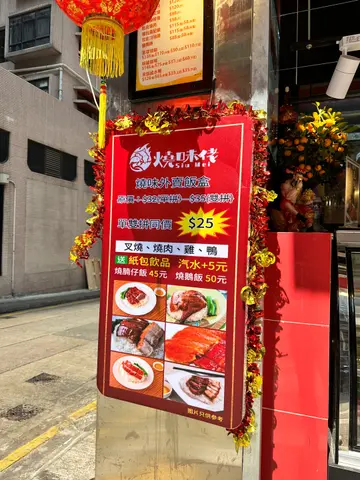 晚上去到见到人山人海 好多人都买外卖当晚饭🤪$25已经有一个双拼饭 ,超级抵!我就买咗几款烧味~包括有烧腩仔 叉烧同埋烧鸭😜叉烧~入口软熟😋系半肥瘦嘅~蜜汁满满,又甜又好吃脆皮烧腩仔,份量好多,有成十几件烧腩仔,肥瘦比例啱啱好,肉质松化,外皮趣卜卜❤️❤️烧鸭 ~ 咬下去肉质鲜嫩再配上酸酸甜甜的酱汁,非常好送饭🍗💯💯呢间烧味店性价比几高!!下次再嚟试其他嘢~