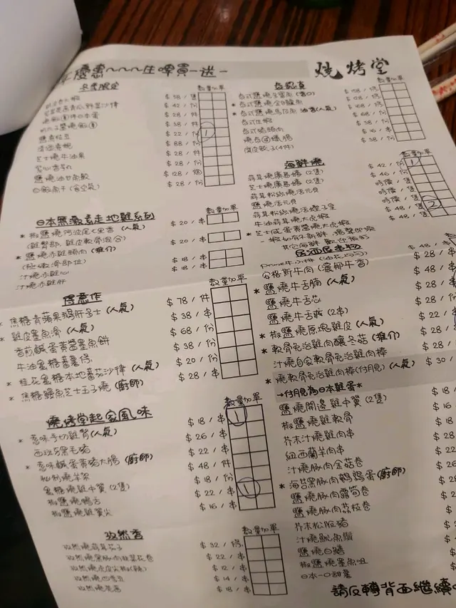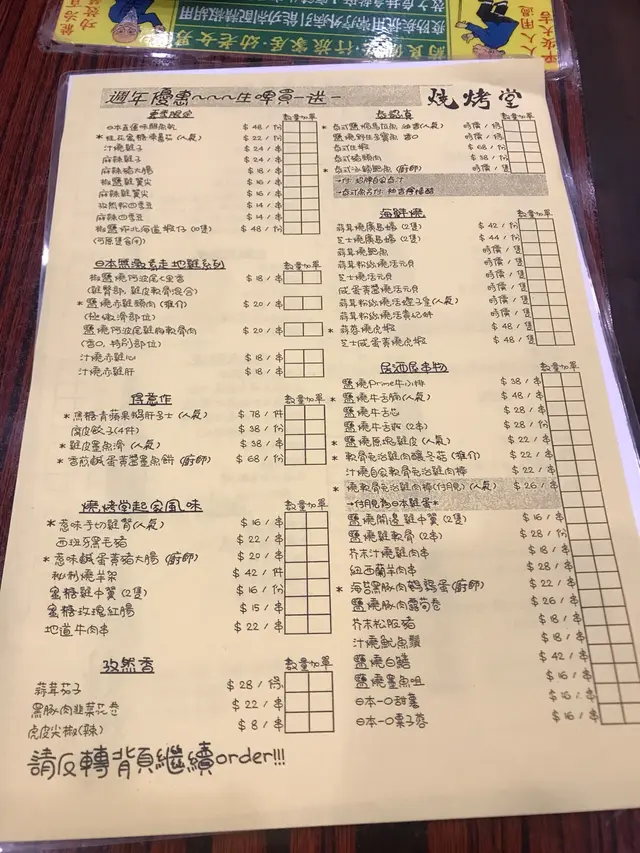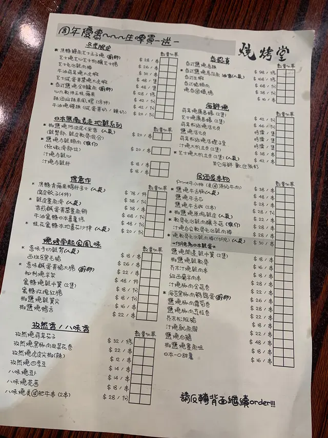 今日7:30左右入座,鋪頭多客,得5、6張檯,每張檯2-4人,我地兩個人7:38落order,d野食8:30先開始上,每食一樣嘢食就要等5-10分鐘,上左兩樣嘢之後大概8:45,我地好友善咁問下店員我地既蠔開始燒未,點知廚房個人聲大夾惡咁呼喝出黎:「唔好再吹啦!」我地等左個幾鐘先食到兩串嘢,問下兩隻蠔開始燒未姐,又冇大聲,又冇diu你,咁惡做咩先。好啦,之後再上鹽燒牛舌腩,我頂!果3粒仔又乾又孩又鹹既牛舌,$48蚊都算,仲好等咁耐咁難食!d泰式豬頸肉又燒到碳咁!我地已經吞聲忍氣,孜然燒蒜茸茄子又淡,唔夠火候!唔夠味!我覺得係浪費食材浪費左條茄子!黑豚肉韭菜卷又燒到乾爭爭!真心我自己燒都好食過佢多多聲!今次真係食到間垃圾!食物劣難食!服務態度惡劣!極有效率!仲要唔係平!又唔係多人食都咁串嘴!真係超級失望,食得好唔開心!食尼間?不了!…查看更多