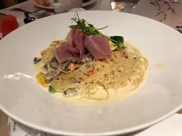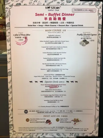 行完沙田新城市广场,都差不多六点钟,于是在此吃完晚饭才回家。见到牛扒先生有半自助晚餐,价钱只不过是一百多元,便毫不犹豫攞位入座。未上主菜前,可以去沙律Bar拿点食物,食物的种类亦相当丰富,有熟青口、熟虾、面包、各式沙律、cold cut等等。对胃口不大的朋友来说,单单一个沙律Bar足以填饱肚。主菜点了四色帕尔马风干火腿忌廉天使幼面和西西里烩鸡配钮纹意大利面,天使幼面忌廉味浓,入口 creamy; 西西里烩鸡则蕃茄味重,令人十分开胃。四色帕尔马风干火腿忌廉天使幼面西西里烩鸡配钮纹意大利面…查看更多