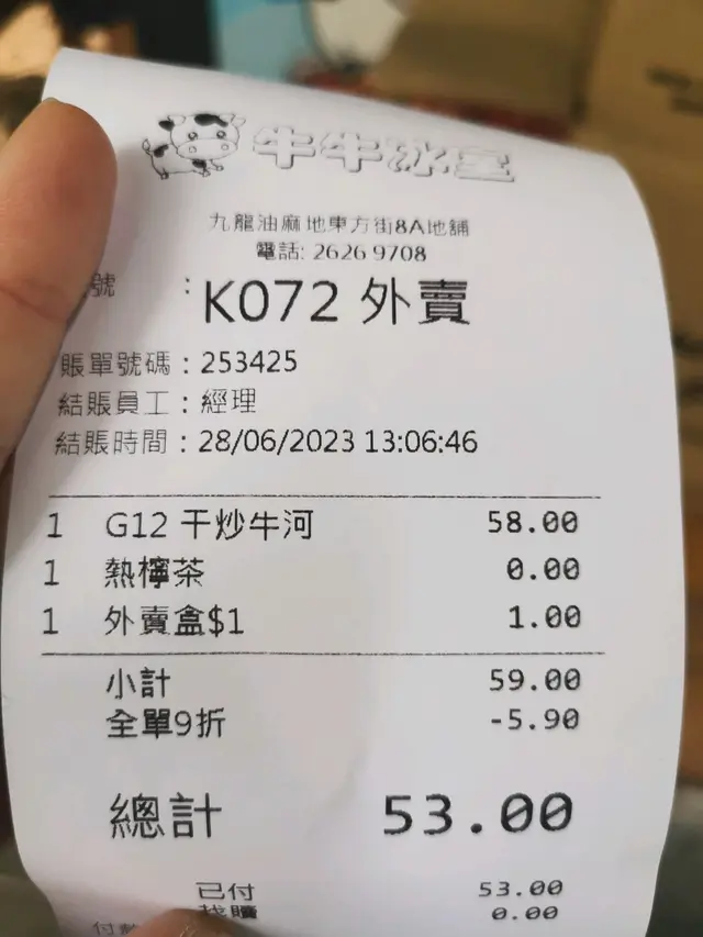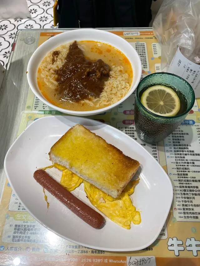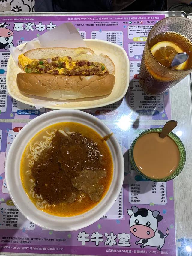 。牛肉都算多, 但今次啲牛肉食落有渣,麻麻地!炸雞髀, 單看外型顏色就不錯,而且幾大隻,咬落仲好鬆脆, 食得出係生炸的:)! 不過,小妹就覺得味道略為醃得有點鹹,多左五香粉!熱奶茶茶底偏濃澀,所以小妹叫多奶會合口味點! 而凍奶茶就較為偏甜,但茶味濃度也可以!總括而言,牛牛冰室位置處於小街巷尾內,不太顯眼,但在油尖旺來計,性價比算高! 夥計姐姐個個都好nice、好勤力! 大家要記得油麻地還有一間叫🐮🐮呀!