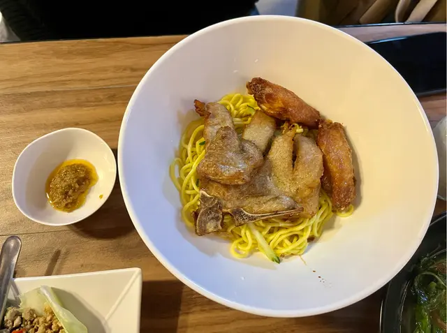 黑椒豬扒雞翼乾撈麵,醬汁完全唔油膩,仲有啲炸過嘅蒜片,香脆、味道豐富,間中夾吓啲青瓜食會有助解膩。另外佢啲豬扒同雞翼都好好食,唔係普通炸,而係醃過有香料嘅豬扒同雞翼,應該係香茅豬扒同雞翼嚟!仲有個地方十分加分同驚喜,塊豬扒食嘅時候仲係熱辣辣,唔係預先炸定!今時今日觀塘嘅繁忙時間,都可以食到唔係預先炸定嘅嘢,真係少有了。(*當然都有可能咁啱佢炸起)