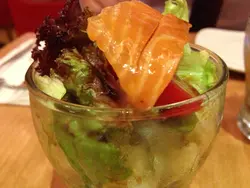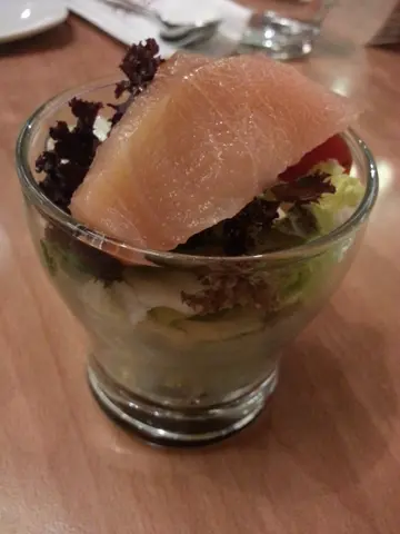 有日经过呢间系APM已久既百泷谂起系㖞又未食过本身已经食左正餐谂住去食下甜品,点知冇咩啱心水最尾又食左个set lunch……:^000000000000三文鱼沙律三文鱼只有一片,不过感觉还balance因为整杯沙律真系一口size,太多反会腻三文鱼偏干身,油腻感不重蔬菜部分清新爽脆,解腻及打底之选,可惜真系份量太过少:^(白汁猪颈肉炖饭猪颈肉份量都多,肉味浓郁,感觉弹牙有嚼劲白汁香气味道刚好,不会过浓以致油腻,裹到饭粒但唔会浸哂咁加上有不少蔬菜粒,食既时候唔会觉得太腻太黏,不时有点清新感饭粒未至稔烂,仲系有粉既感觉,同埋微硬有质感:^)整体份量几多,食完真系会有点饱感绿茶香蕉奶昔绿茶味甘香几重,又唔会有苦涩味道香蕉好香甜,清新不腻,配上绿茶几搭配饮品份量都偏多既,饮完都完饱了xdddd(当然我第二餐就另作别论…查看更多