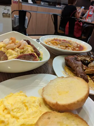 见到食评讲到惊为天人,话几滑几好食,味道ok, 入去试试。大家介绍叉烧海鲜滑蛋饭,话个叉烧肥瘦适中,滑蛋滑好味,一食好普通,讲真叉烧好硬蜜汁唔够,滑蛋正常,未话好特别。叫左第二样,滑蛋奶油猪罗宋汤通粉瑞士汁鸡比,先讲罗宋汤通,稀既汤正常味道,个瑞士汁鸡比同街边买一只油鸡比一样味道,无乜特别,个餐唔值咁贵啰,隔离楼上冰室我食完又再食真系好食过哩间皇茶冰室好多,个瑞士鸡比入味重口味,个蕃茄通系食过最好食,就算劲饱都要饮哂d汤,人地个d 真系惊为天人。再讲个滑蛋猪仔包,滑蛋正常,猪仔包个包好硬唔够松软,真系唔会再食下次。…查看更多