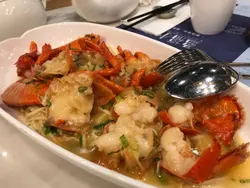 馬鞍山俗稱美食沙漠,平時都唔知去邊度開飯好,慶幸新港城中心2樓有一間中菜-盈福小館,可以收咗工之後去開飯。餐廳環境空間好大,我哋兩人就被店員安排坐四人座位。茶位都只係$12一位,一邊飲茶、一邊睇吓餐牌揀嘢食。突然好想飲湯,隨即叫咗半煲豐料老火靚湯,賣相非常特別,用一個茶壺裝住湯,自己倒落碗飲,好有特色。湯料非常多,可見呢煲湯非常足料,而且味道很鮮甜,每人可以飲到四至五碗。除咗散叫食物之外,仲有晚市超值海鮮組合,仲要價錢低至半價。老壇酸菜魚用了非常嫩滑嘅石斑做,魚塊份量都幾多,飲一啖湯酸酸辣辣好開胃,配以魚肉非常滑溜嘅質感,簡直一流。還有上湯焗龍蝦配伊麵底,廚師非常體貼預先把龍蝦切件,唔需要整污糟隻手,就咁用個口食龍蝦。龍蝦肉質爽口彈牙,味道非常新鮮。伊麵更非常入味,有好濃郁龍蝦味道。除此之外,還有醬汁蒸魚塊同埋生炸乳鴿。餐廳為每一枱客人提供一盒手套,帶着食乳鴿,唔會怕整污糟。最後埋單都只係$460左右,二人食到飽肚嘅份量,可見價錢非常合理超值。另外憑收據可以下次食嘅時候免費換領小食或者餸菜,下次會約多啲人一齊再食過。…查看更多