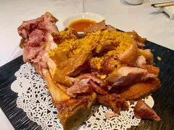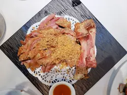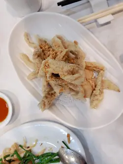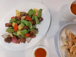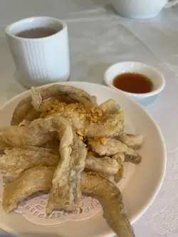 原來除左印度會之外,仲有菲律賓會。朋友得知呢度除左有得BBQ之外,仲有間私房炒小菜添!今次由佢帶路帶我食好野喇!餐廳仲對住個大草地可以睇人玩滾球添。上到去一樓,哇,估佢唔到,以為太隱藏無人知,點知可以坐滿哂人?🤨哇!叫左幾款招牌小菜同燉湯。生磨龍皇大杏燉豬肺😋鐘意杏仁味就岩哂,呢個湯既杏汁味夠哂濃味,好香。豬肺夠新鮮足料,個湯好香濃,鮮甜。唔會話有陣腥味!金蒜脆皮德國豬手好大份既豬手,炸到好香脆,個皮脆卜卜,好惹味!豬手唔會話好鞋肉,又幾嫩。同唔會過鹹。椒鹽九肚魚即叫即炸,炸到金黃香脆。個炸粉薄薄一層,九肚魚食落好香。幾好味!燒汁牛魔王牛肉粒好惹味,加左啲黑椒,紅黃青椒一齊炒,夠哂入味。牛肉粒都幾嫩肉,牛味濃,幾開胃。金磚豆腐粒賣相炸到好靚既金磚。豆腐很滑,加左啲調味粉,令到食落好惹味,外脆內嫩,香滑十足…查看更多
