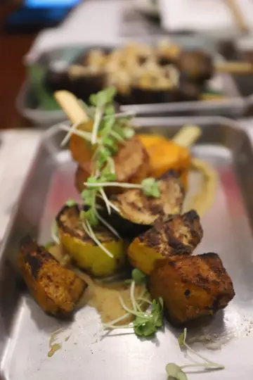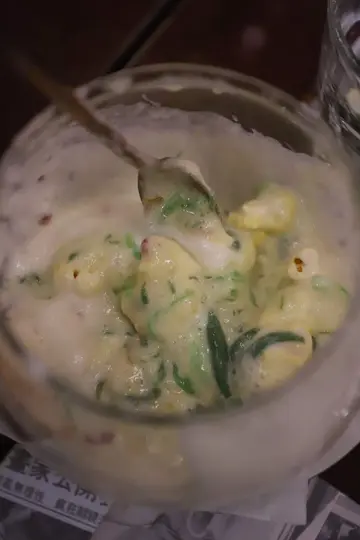 一个大雨滂沱的晚上,冒著雨前来与友人在这间非常特别的酒吧餐厅见面。看门面,它就像是一间配锁匙的舖头,实际上,它却是一间别有特色的酒吧。但我虽然知道它的真身,没有被它的外表欺骗,但就像老鼠拉龟一样,对怎样入内完全没有概念,无从入手。最后才在两位同样地来此吃东西的熟客指引下,找到隐蔽的开门所在,得以入内用餐。步入酒吧核心地带,原来竟是别有洞天,红绿相映的颜色,对比强烈,甚有型格。别致的装饰, 百老汇风格的海报,甚至饮品的餐牌,都极有特色。来到酒吧,第一件事当然是喝酒,这晚我喝的饮品是一杯有芒果成份,名为 Mango Shakes($120)的 Signature Cocktail,甜中带辣的味道,挺特别。点来数款小食,与友人一起分享。Sticky Coffee Pork Belly($38)以越南咖啡粉把猪腩肉腌上一天之后,再加上酱油和意大利咖啡酒,最后才沾上脆米上桌奉客。这小食味道浓郁而且带有咖啡味,作为佐酒吃的小食,颇不错。Spiced Vegetable Hummus($32)以多款蔬菜为材料,每串串烧都加入鹰嘴豆泥与花生一起,口感变得更加丰富。Sriracha Sweet Corn($78)的玉米条经烧熟后再涂上士拉猜酱与芝士,香甜的粟米夹杂著辣味和咸味,风味十足。这晚的主食是 Bone Marrow & Steak Cheung Fan($288)。这另类的肠粉加入了肉眼、牛骨髓等肉类与多款贝壳类海产,并以 XO酱调味,味道浓郁惹味,价钱虽稍贵,却的确十分开胃。甜品 Kumkuat Halo Halo($78)材料丰富多样,有芒果、爆谷、珍多冰、西米等,吃时把各款材料一起捞匀吃,无论口感还是味道都丰富而富层次感,是味觉的一趟特别的体验。这间「磅太太」的环境与食物都极有特色,可惜它已在早前结业,实在可惜 。希望它能尽快重整旗鼓,东山再起吧!…查看更多