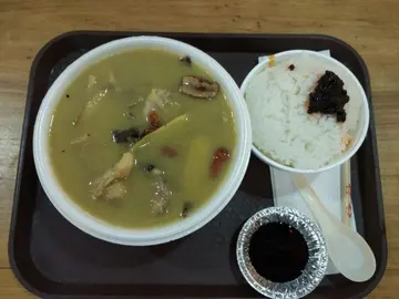 我看见女人婚后相夫教子,不但要为丈夫打理头家,还要为孩子做牛做马,一生劳碌不知道为唛?女人不好好照顾自己的身体会看起来十分苍老,变黄脸婆。离开妈妈身边后才知道以前总把妈妈煮的补汤当做理所当然,现在就算自己会煮也麻烦许多,总要花上繁琐的工序才能煮出一碗汤。几年前知道这间位于八楼的 food court 有卖正宗的酒煮麻油鸡,我二话不说马上买来品尝。完全就是妈妈的味道,真材实料,绝无味精。点餐后老板会给你一个号码牌,然后要等上十五到二十分钟左右。因为老板是现叫现做,一碗一碗煮出来,所以一定要有耐心。这碗52元一碗的麻油鸡还配上一碗白饭,分量十足,一个女人一定吃不完。麻油鸡里头除了满满的鸡肉,还有姜、木耳、枸杞子、红枣和龙眼干。这些材料都是对女人身体有益的食材,吃了会让元气恢复。尤其是我们女人每个月都会来"大姨妈",这段时候女人的元气会大伤,所以一定要在"大姨妈"走咗之后马上进补,才不会愧对我们的身体。每次吃完麻油鸡,身体都会汗流雨下,仿佛置身在桑拿房,所有的毒气好像被排了出来,舒服极了!这碗麻油鸡的精华都在这一碗汤里,你们可以不吃鸡肉,但那碗汤一定要喝完。我每次都会把汤喝光,剩下的鸡肉就叫老公吃掉