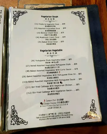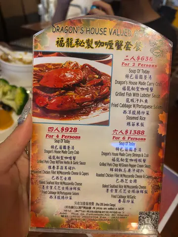 嚟澳门玩好想食正宗嘅葡国菜,坐的士嘅时候的士司机就推荐我哋去呢间福龙。听讲平时都好多人可能要订枱,我哋无为意就直接walkin去食,𠮶时大约五点九未到六点,佢就要求我哋七点半前要还枱。建议大家如果热门时段想去食都系要订咗位先会好啲。去到我哋一共食咗五样𩠌:葡国腊肠炒菜、马介休球、非洲鸡、葡式煎鱼柳同埋秘制咖喱蟹。炒菜同平时蒜蓉炒菜差唔多,葡国腊肠系pepperoni,有少少酸酸哋咸咸哋,我都系钟意中式腊肠多啲。马介休球就系我要求要点嘅,因为我好钟意咸鱼同薯仔,我觉得佢炸皮好薄,食落每啖都系薯仔好满足。不过食食吓觉得有少少鲮鱼球嘅味道,可能对某啲人嚟讲会偏腥?但我就好钟意食。非洲鸡就系见佢唔系喺常设menu就点咗嚟食,一上枱睇落干干哋鞋鞋哋无咩期待,点知食落好juicy,个汁好惹味,捞饭一流。份量得五嚿,唔够分啊。葡式煎鱼柳就普通,份量都唔算多嘅,胜在个鱼煎得好香脆又唔怕有骨。秘制咖喱蟹就真系大力推荐,我唔食蟹嘅因为整到成手污糟晒又好难剥肉。不过佢哋好贴心有比埋手套,钳,湿纸巾同洗手水。如果唔系见佢哋咁有准备我都唔会落手食。佢蟹钳其实都已经有剪开比你,食起上嚟难度唔算高,唔识食都搣到啲肉有食干净个钳,系要小心碎壳。个咖喱好惹味,我食唔到好辣但都接受到呢个辣度唔会话要系咁饮水。除咗蟹入面仲有啲蛋丝同埋洋葱,洋葱我真系食唔停口,爽爽哋又可以食到咖喱汁,大满足。如果餐前送嘅餐包留到呢个moment点咖喱食一定好正。佢送嘅餐包都好好食,暖暖哋,都紥实,就要食同点汤都好味。汤就系杂菜薯仔汤,薯仔存在感好重,每啖都食到少少薯蓉嘅感觉。总括而言,每样都唔错,不过份量偏少,同埋偏咸,可能要叫多两个饭嚟送会好少少。