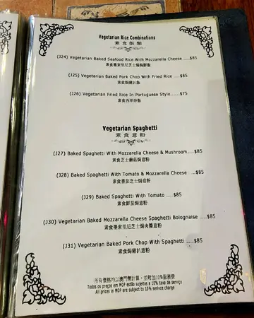 环境方面:餐厅里面装修几靓月几有特色,同埋有啲古色古香嘅味道食物方面:1. 厚切芝士包好味,热辣辣又脆,同埋芝士都几香,个份量都好多2. 葡国炒蚬个汁几好味,但啲蚬肉就少啲同细粒啲3. 龙虾汁扒鱼个汁都OK嘅,龙虾味就唔太重,块鱼扒都够滑,但鱼味就咗淡少少,可以再鲜味啲4. 葡汁猪扒意粉,呢个价钱黎讲反而有惊喜,猪扒够腍好味,个意粉食落都唔系斋白烚,系有额外处理过,个葡汁都唔错服务方面:想赞下啲staffs,好helpful,会建议我哋食啲咩,同份量,见我哋有咩需要都会主动帮手,例如影相,拎extra餐具同加水之类我哋2个人叫咗4样嘢食,再加埋佢俾嘅两个餐包,食到最后饱到食唔落, 唯有放弃两个餐包同少量意粉。P.S. 呢间餐厅好full, 记得提早去book枱, 如果唔系就要等到2046先有得试