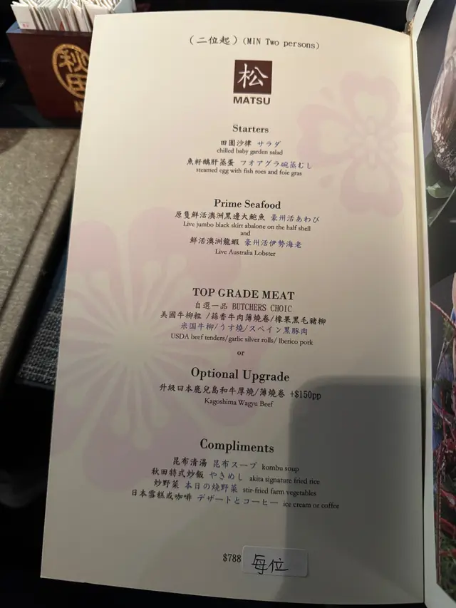 ✨师傅好劲!用蛋汁喺铁板度写生日快乐!最近终于去咗心心念念嘅日式铁板烧料理,真心每一道菜都感受到师傅心思同时令美味!好想同大家分享下今次的美食体验~ 每一道菜都好有心思,好多细节位都照顾到味觉同视觉享受。🥚飞鱼子鹅肝茶碗蒸入口超滑,啖啖都食到鲜味飞鱼子,加埋浓郁鹅肝,层次感超丰富。🌊水云沙律配鲍鱼片鲍鱼片爽口弹牙,配埋水云沙律,酸酸甜甜好开胃。🥗季节沙律新鲜时蔬,配搭清爽酱汁,食落无负担。🦞鲜活伊势龙虾超大只超新鲜,师傅即场处理,配埋面包一齐食,龙虾肉弹牙又juicy!现场仲有小小表演🔥🔥睇得又食得😍😍🦪紫苏叶带子二食第一口原味带子,鲜甜到不得了。第二口将带子、配料包埋紫菜一齐食,又多咗一层口感,超满足!🐚原只鲜活南非鲍鱼连埋海带一齐食,点秘制海苔忌廉汁,超浓郁!配埋心内美萝卜,清新解腻😝🦆香煎顶级鹅肝外脆内嫩,配意大利黑醋同菠萝,非常解腻,完全唔怕腻滞!🥩鹿儿岛霜降和牛薄烧卷同厚烧都有得试,油花分布靓到不得了,入口即溶!配盐昆布、岩盐、芥末酱、蒜片,每一口都好幸福🥰🍚秋田炒饭金黄色炒饭炒到粒粒分明,香气十足,完全停唔到口😍🥬本日烧野菜新鲜蔬菜炒得好香脆,轻轻盐味就已经好有味。🍲伊势龙虾清汤鲜甜龙虾味,暖胃又清新🦞🍵精选甜品最后必食抹茶雪糕配红豆馅豆沙包,完美收尾~师傅仲系铁板度写字!写生日快乐超劲!!…查看更多