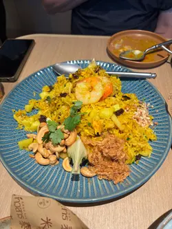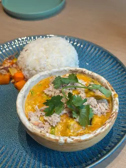 青咖喱豬頸肉飯、泰式炒金邊粉