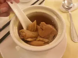 周日参加朋友研发产品开幕仪式,一伙人柴娃娃走到元朗来,山长水远自然多找个节目,活动领导就把大家带到红磗屋十号吃晚饭。大宅位于红砖屋跳蚤市场侧,古色古香大宅风范,从前富贵人家之遗产。石墙大树,门前花园,圆拱门,阴暗灯火,若不内进,倘以为是私人大屋。走进见介绍,方知道有私房菜。圆拱木门,古装铁锁,推门便可直进。门外亦有桌椅,相信秋凉可以用餐。室内装潢雅致,书画装饰,水墨画,字画,亦有小酒吧。私房菜单,每位$330有十道菜及水果盆,份量丰富,可惜味道一般,如住家之家常便饭。虫草花炖螺头老火炖汤,醇美香甜,虫草花有多种保健功效,多吃有益,清汤内附有连骨猪件及鸡脚,未有煲糜烂至失味,可吃,这道我喜欢。百花煎焗蟹拑每只胀卜,洒上青葱,外型讨好,味道丰富,略带鲜甜虾香,但尝到是虾胶虾肉多于蟹肉,我认为该名为虾拑,口感软嫩;配以的西籣花白烚但新鲜,配合炸物作平衡亦适合,我觉得味道不俗。美味炸鳝有新意,鳝皮涂上薄薄炸浆,确实炸至香脆惹味,而鳝肉保持嫩滑有汁,蘸的酸甜酱,水准接受,但个人口味,并不欣赏鳝皮炸至硬块之口感,而且较喜欢蜜汁烧风鳝的蜜味。配以微辣爽脆的大豆芽,韩国烧烤前菜的风味。此道虽不俗,但未有如期望中出色!XO酱炒大海虾中规中矩,大海虾并不怎么样鲜香,也许被X0酱盖过,肉质尚算爽嫩,伴以翠绿的四季豆,无出错,但印象不深刻。正海上鲜新鲜蒸鱼,掌握蒸时恰当,鼓油调味亦可以,欣赏用双鱼,因为斤多以上的鱼容易蒸得过火;鱼是我的至爱,无怨言。生炒骨配椒盐鲜鱿鲜鱿跟生炒骨配,有些格格不合之感,两种味道南辕北辙,干身盐味配黏稠酸甜,大家可以想像,始终各自精彩,何必同床共寝!鲜鱿新鲜,炸酱无过厚,交足功课。生炒骨不过不失。盐焗鸡也许是元朗新鲜鸡,肉嫩有些鸡味,据说是独门袐方处理,朋友告知胸肉不嚡,味道平均,赞口不绝,我的近骨位肉件却有些过咸;同意,比起市区吃到的雪鸡出色,但非吃过的本地鸡中最出色,是否肉质欠些靱力!上汤浸时菜难以出错,农场直送无难道,翠绿鲜嫩,以上汤浸,清而不淡。金枝炒饭米饭粒粒分明,味道淡淡,已经太饱,浅尝后没有什么印象。川贝炖雪耳清甜可口,雪耳炖至软滑,川贝腍身,炖物合格。果盘是西瓜火龙果配,新鲜甜美。点选了来自阿根廷的红洒,三百多元一枝,顺喉没出错。古式大宅同膳,鄕材风味有特色,有被大户人家邀请家宴之感,环境宽敞舒适,聚友不错,价钱合理,但环境相比食味出色,可以说是麻麻地,若要有回头,需要多一点功夫。…查看更多