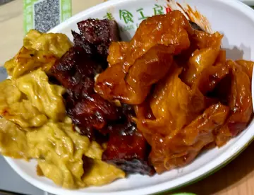 有镬炒嘅三𩠌饭。叫咗个甜酸狮子头,炸芋卷(另外加甜酸汁),苦瓜炒蛋。可以加$4转炒面。$ 40三𩠌。另一次叫咗红烧豆腐,菜心同炒蛋。炒蛋好有鸡蛋味已经系第几次返嚟。…查看更多