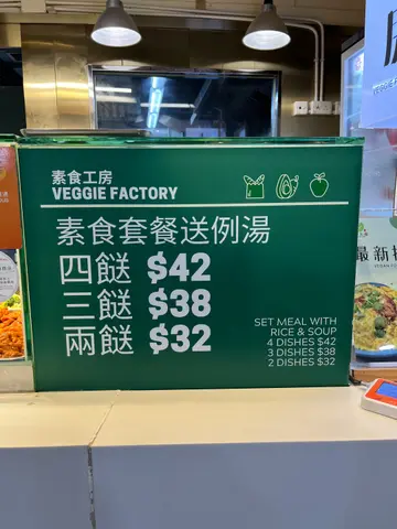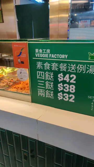 偶然食下素食,减碳饮食对自己身体及地球健康绝对有帮助。一般素食餐厅炒个小菜粉面,最少$60起跳,今日经朋友介绍嚟到呢间素食工房试试。 Foodcourt环境大家都略懂一二,眼见前面位女士一买就4𩠌,相信呢度素菜是高质的。我自备外卖盒,点了一份狮子头及一份茄子,剩𩠌不要饭,只是$38,在现今社会真系难做到。由于太饿忘记了影相,下次再去一定补返。素狮子头食落好结实,绝非轻飘飘,而茄子更是水准之作。值得一赞是店员态度很好,并没有因为我自备盒而觉得麻烦,反而关心我能否拿稳。既然2𩠌饭店在香港可以偏地开花,期待素食2𩠌饭亦可以开到成行成市!…查看更多
