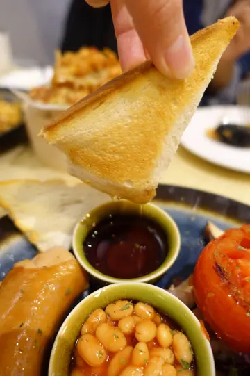 大约十种食材集于一身!相当丰富!包括:沙律、多士、蕃茄、焗豆、炒蛋...色彩缤纷!