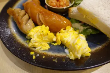 师傅已把法式吐司切成小件,沾满蛋浆,色泽鲜黄!实在几饱溜,食一件已经 KO 我了!