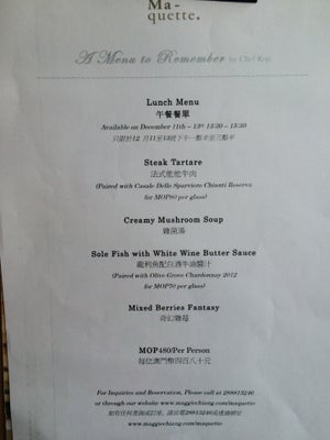 澳门餐厅绘;位置较难找,但一Google就能找到;泊位也不易。餐厅不大,有四张二人枱,两张四人枱;但餐厅内所有的椅子都不一样,墙壁上也挂了不同的画。自制的热腾腾面包,啱晒我心水; 前菜选了两款,分别是芝士配无花果及焦糖洋葱,口感好特别,金文毕芝士烤过后,香脆可口;另一款前菜焗蜗牛。蔬菜汤和龙虾汤,搭配少少的胡椒粉,出奇地鲜味。牛角包因店内没有车里茄关系,内裹配了沙律和水牛芝士,但超级好味,吃落松化,推介的!主菜是鲈鱼配蚬肉,味道淡;墨鱼汁意大利饭,鱿鱼煎得香口,唔错唔错;另一个意大粉是配牛肝菌和巴马臣芝士;甜品时间到了!有奶涷,心太软,和戚风蛋糕!推介是轻盈嘅蛋糕,试了还想外买!心太软,细细份,流心够稠身,做得好。奶冻搭配焦糖脆脆,好特别。…查看更多