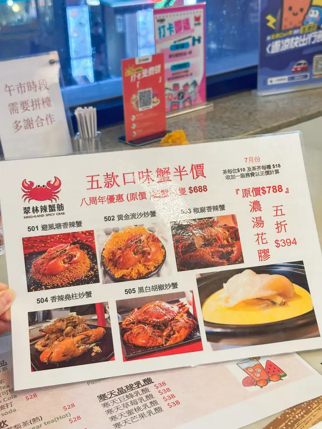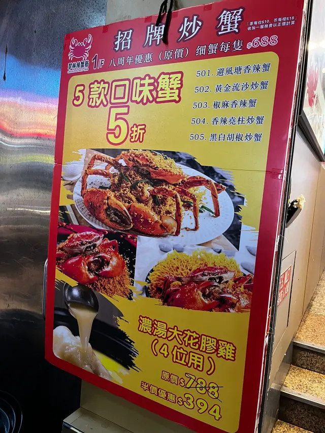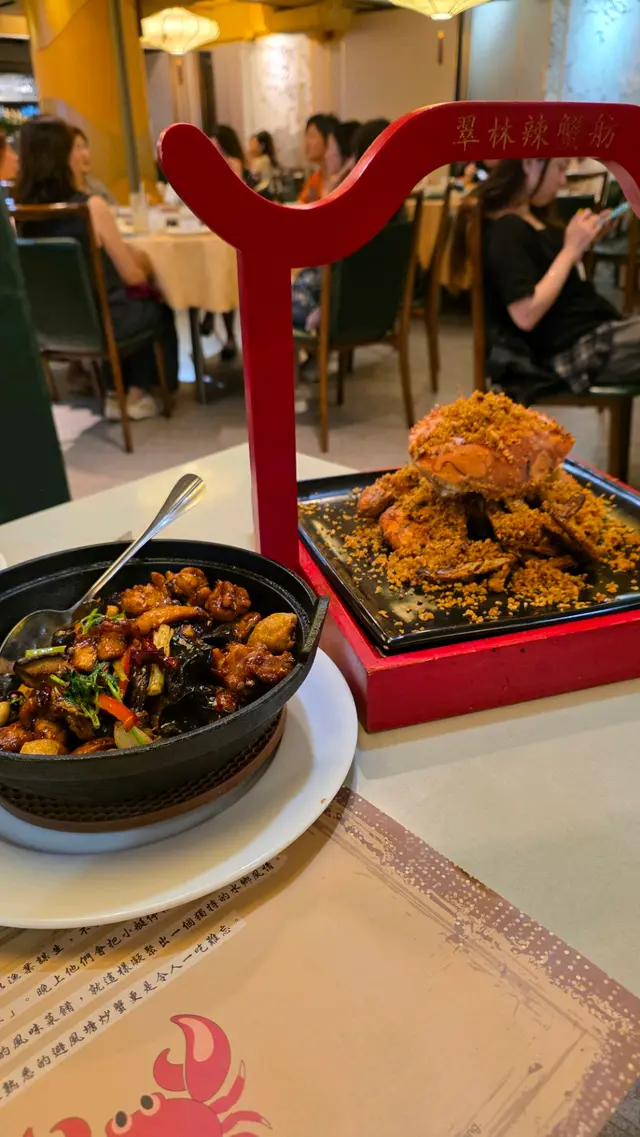 餐廳現在正推出8週年大酬賓, 可以用半價優惠享用蟹肉和花膠湯, 非常便宜! 🥰 明顯餐廳於8年內儲了不少熟客, 眼見餐廳員工跟食客有談有笑, 如今實屬難得 😌避風塘炒蟹 $344總共有5款選擇, 包括黃金流沙, 避風塘, 椒麻香辣, 香辣堯柱跟黑白胡椒, 5款入面我只試過2款, 家人不能吃辣, 所以比較保守選擇避風塘 😬 蟹肉大隻又新鮮, 加了大量炸蒜, 鮮咸的蟹肉味沾上微微辣, 另外蟹蓋有不少蟹膏, 更加滋味 😋 深圳麻辣雞煲 $188雞煲用薑蔥蒜爆香, 再加上獨特秘製醬汁, 每件雞件都完全被醬汁醃製, 帶出輕輕的麻辣味, 又不會被完全麻痹之餘同時惹味 🔥 紅燒乳鴿 $48首先乳鴿係比較細小, 外皮輕微脆口, 可能太過BB肉量都少一點 😅 可能因為同樣原因, 肉質比較嫩口。黑椒牛仔粒 $118牛仔粒很軟腍, 不過略嫌用生粉醃得太誇張, 所以味道上好像缺失了本身應有的鮮味 🫣 比起上面3款食物就稍為失色。味道上有水準, 而且小菜價錢並不貴。以平日來說餐廳算很多人, 幾乎滿座, 難怪可以開業8年依然屹立不道 👍🏻…查看更多