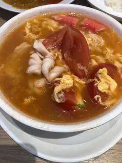 終於有翠河,叫了我最喜歡的咖哩雞及鮮茄蛋海鮮湯飯,加碟油菜。先來一碟咖哩雞,在一大碗咖哩汁內有兩大件雞及薯仔,而碟飯明顯好少,唔多夠送飯。鮮茄蛋海鮮湯飯,飯及湯多,海鮮有只兩粒蝦球,一件魚塊,魷魚及蟹柳就碎上。感覺有點欠誠意。味道上可以啦,由於新店,環境好好,侍應態度有待改善。查看更多