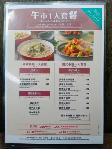 厨师团队以上乘食材、融合传统及现代烹调技巧,诚意奉上别具特色的潮州卤水及鱼饭、滋润养生的汤品、时令小菜及潮州粥,让食客重新体验经典的潮州地道风味,同时与亲朋好友一同分享美味。