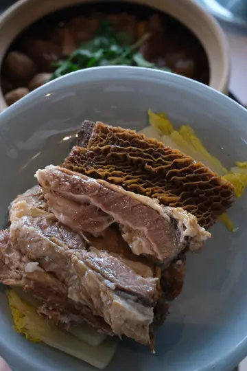 人人都话香港无平野食,特别潮汕牛肉火锅同牛杂煲,好多年前已经话平过香港好多,但其实只要留意下,香港都有好多平野,朋友就刚刚推荐左我呢个招牌潮式牛杂煲。先要讲下佢个酱汁底,师傅话俾我哋听佢系用上港式,潮式同深圳嘅口味调较过,用料你基本上讲得出都有,有牛腩,有牛筋,有牛肚,有金钱肚,有弹牙嘅手打牛丸,全部都算唔错,同我记忆中之前系皇岗邨食过好地道嘅牛杂煲味道无乜分别。btw,唔够你仲可以单点。香辣鸡煲虽然唔系朋友推荐,但我地见隔离枱叫都做得好吸引,叫左一个,鸡份量多同够,我觉得多过一只嘅份量,有从前一品高峰时间嘅水准。手打墨鱼丸,手打虾丸,手打鲮鱼球,全都好新鲜,以一间唔系做开火锅店嘅店来说,都著实不错。虾丸同墨鱼丸全部都吃到原材料,够鲜够足料。韭菜猪肉水饺,菜肉云吞全部都大大粒而且好饱满,吸收个汤之后更加好食。响铃同生根都系必点嘅项目,又系好适合夹个牛杂汁。重口味朋友点了鸭血同鸡子,仲有炸鱼皮都系比平常嘅火锅店出色。最尾呢期最流行嘅香水柠檬茶,仲要有霸王杯,其实同平时系深圳嘅感觉一样,而且价钱都差唔远,我觉得,有时周末唔一定要上深圳,香港都做到同样效果。…查看更多