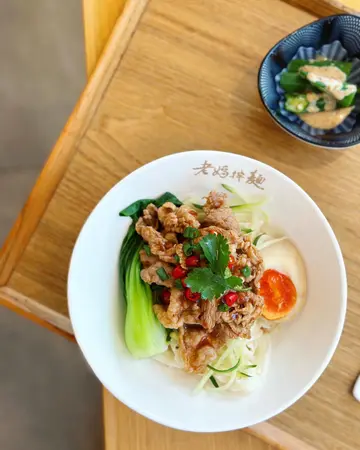 《老妈拌面》嘅午餐套餐只需$68起,包括主菜、前菜、小食同饮品,真系超级抵食!如果你钟意食辣嘢,不妨试下川味红烧三宝牛肉汤面🍜个汤底微辣、浓郁香口,仲有牛𦟌、牛肚同牛筋,肉质鲜嫩弹牙,绝对系牛肉控嘅最爱!跟餐小食拣了酥炸甜不辣,我外脆内软,入边烟烟韧韧,口感非常好👍🏻饮品方面,拣咗老妈黑糖珍珠鲜奶茶🧋,珍珠Q弹有嚼劲,香浓的奶茶味道有茶香又唔会太甜😙另一个午餐拣了台式黑毛猪清汤葱油拌面。佢嘅面条弹牙有嚼劲,加上清汤煮得刚刚好,唔会太浓太淡。拌面嘅葱油香气四溢,真系令人食得停唔住口!跟餐小食拣了红葱蒜香酱油生菜🥬高山冷泡茶茶味清香。我哋另外再加多一份小食澎湖花枝丸。花枝丸弹形又好食😋 午餐价钱抵食,食到饱饱!…Read More