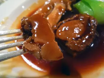 蚝皇38头吉品扣鹅掌。吉品鲍味道鲜浓,弹性中带软滑,微黏的鲜美感缠绕舌头,好吃!鲍汁也是同样鲜美馥郁,令得故鹅掌及小白菜亦变得异常鲜香美味,整道菜也是味觉享受! 其他菜式还包括