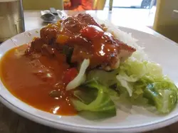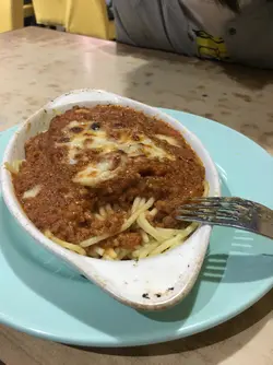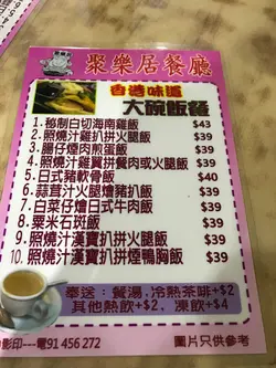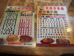 After exploring some Lunar New Year markets nearby, we decided to have a quick early dinner before heading home. Looking about we decided on a very old looking cha chan teng.Menu is in Chinese only. There is no 10% service charge. I noticed they had Hainan chicken rice ($60) and they claimed it was their speciality so I decided to give it a try.It came with a soup of either the daily Chinese soup or borscht. I decided on the Chinese soup. It was didn't have any flavor at all.The chicken rice was similar as well. The chicken was not boneless and very tough. It also had no flavor but was just super oily. The rice also had no flavor and was just plain oily. The oil wasn't chicken oil as well. It just tasted like oil. The vegetables were just lettuce placed on the side and also drenched in oil. Probably one of the worst Hainan chicken rice I've had in Hong Kong.Boyfriend played it safe an ordered from the afternoon tea set menu. He chose a spaghetti bolognese ($50). This was a bit better. There was a lot of mince meat and the amount of tomato sauce was plenty. The spaghetti was not over cooked.I wasn't too thrilled with what I ordered. However, boyfriend felt his was ok but he also agreed he wouldn't be back.…查看更多