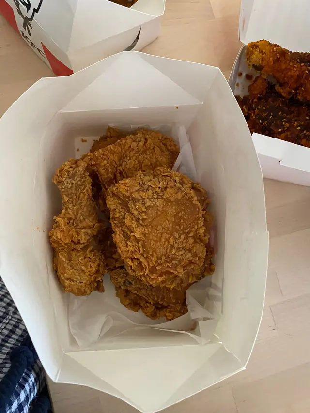 細隻過包紙巾架雞肉,仲要不停加價 味超級死鹹 disappointed ,blacklisted even i am fie hard fans , no longer support kfc anymore .the chicken is very small ,u can see from photo as smaller as a tissue ,very salty and the price adjust and raise more then 10%bought a$59 set ,not full查看更多